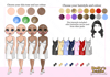 three different skin tones, three eye colours and 16 hair colours