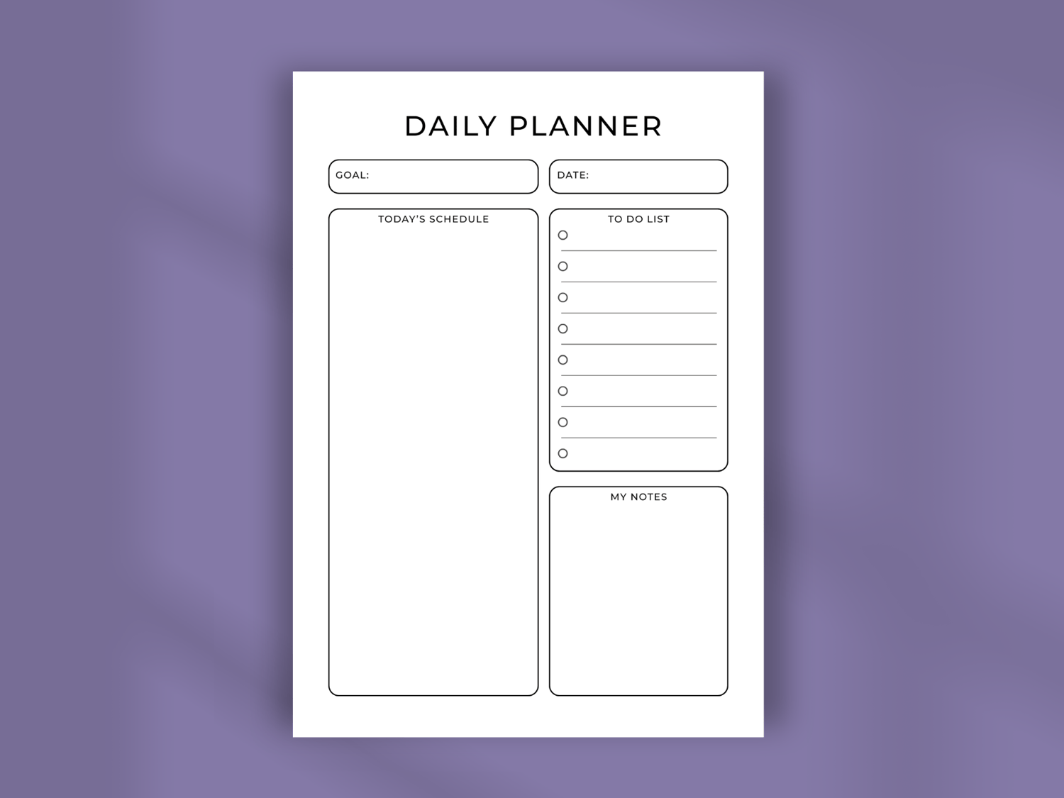 👉Take control of your day with this practical undated daily task planner template. Featuring a clean layout with sections for your schedule, a checklist for tasks, and a dedicated area for notes.