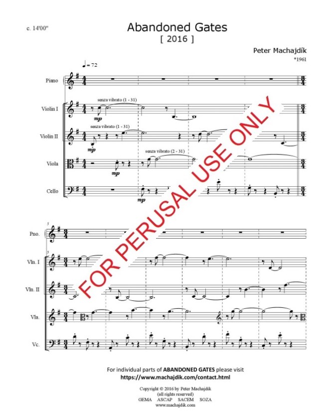 Peter Machajdík: ABANDONED GATES piano quintet (piano and string quartet)