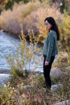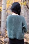 Purl Soho Understory. (DK Weight; 50% Baby Alpaca / 25% Undyed Baby Yak / 25% Silk; 100g; 250 yards/ 228 meters). 4 (4, 5, 5) (6, 6, 7, 7) skeins required. Color used: Sorrel Green.