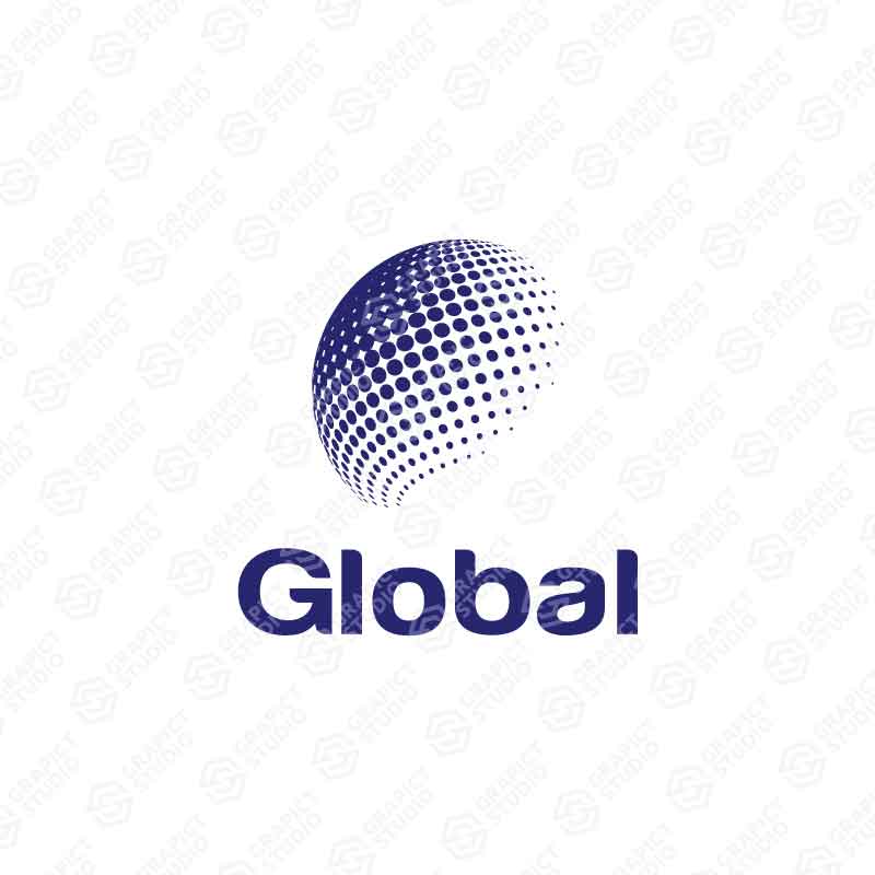 Logo design related to technology or communication company. Creative illustration of halftone globe logo for blog, website, business, company or personal profile.