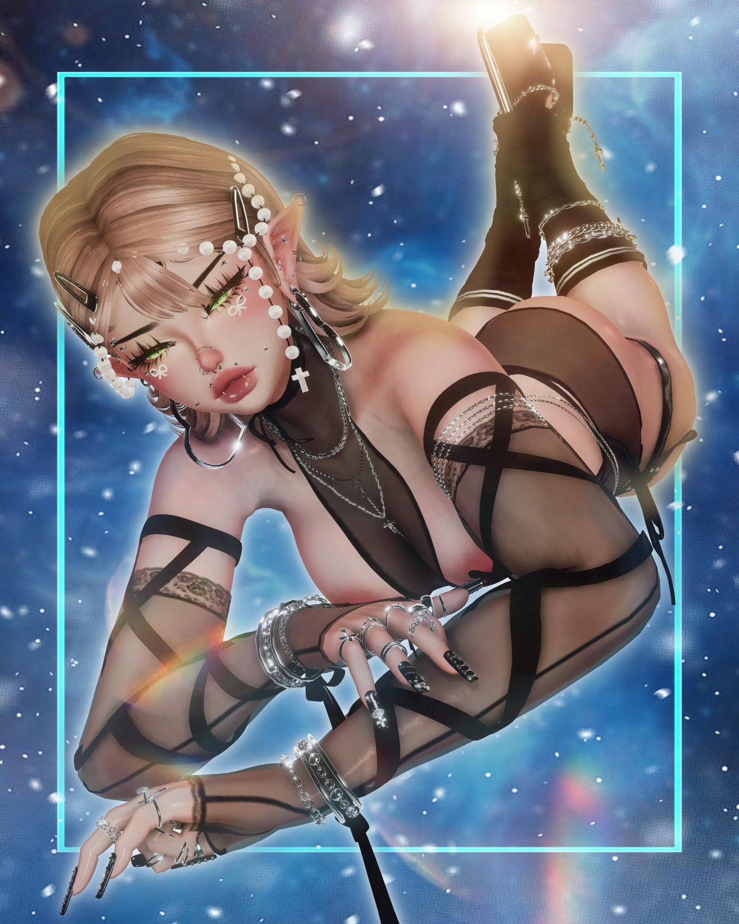 lacey ears, long sleeves, body piercings, thigh garter