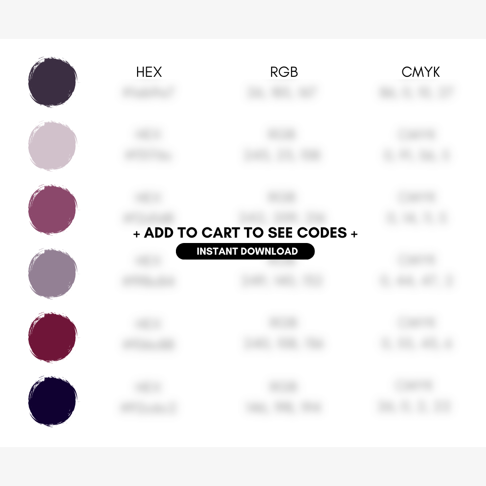 Transform your creative small business with our exquisite Romeo & Juliet Color Palette, perfect for adding a touch of drama and elegance to your brand. This curated selection features moody, brand-defining hues including dark blackberry, muted purple lilac, mulberry rose, dusty lavender, cabernet plum, and deep indigo. Ideal for branding, marketing, packaging, social media, and website design, these sophisticated colors will elevate your visual identity.
