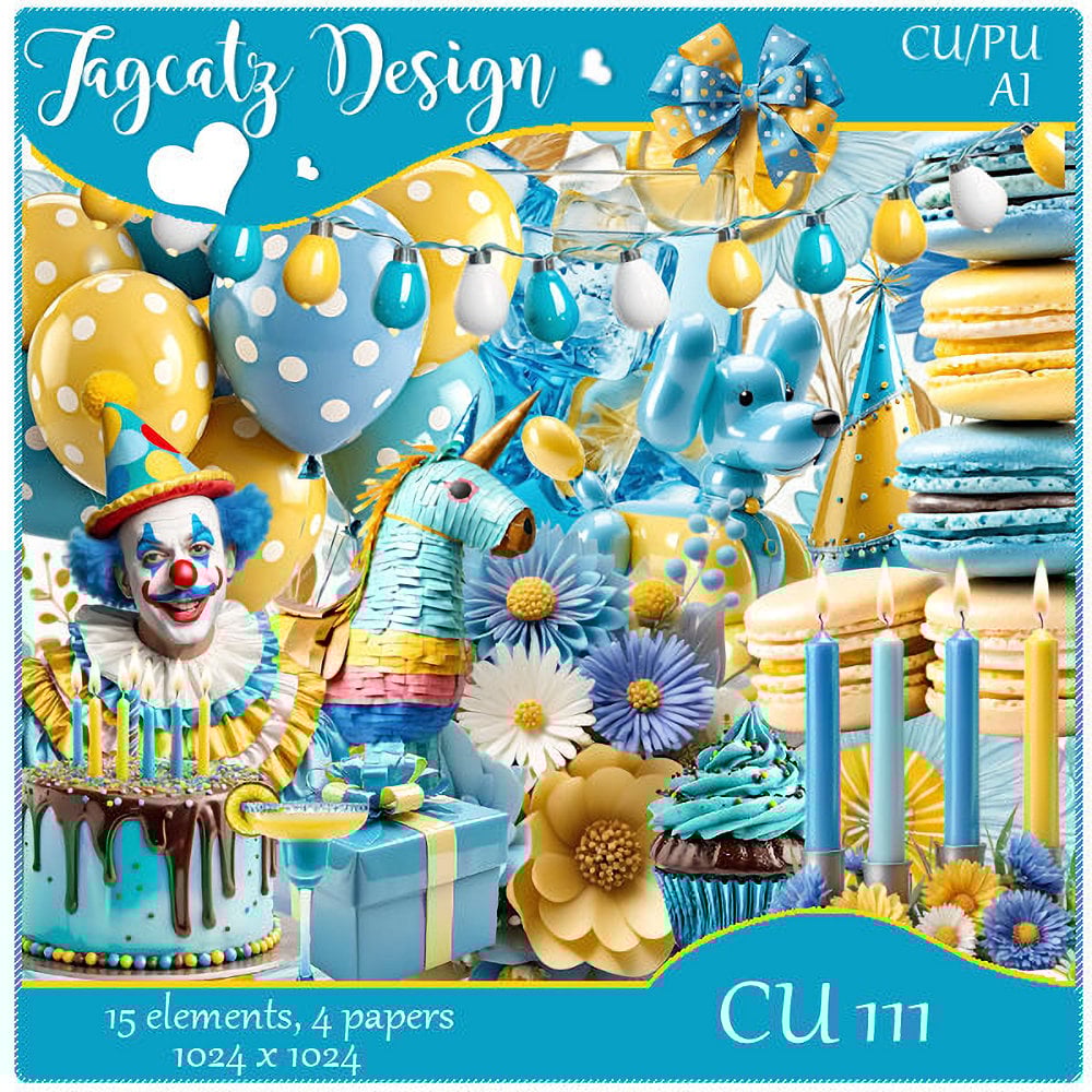 15 elements and 4 papers with a party theme. 1024 x 1024. AI product. CU/PU pack.