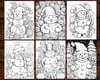 32 Christmas Critters Cute Animal Coloring Page Book, Adults + kids Instant Download Grayscale Coloring Page, Printable PDF Squirrel, Fox