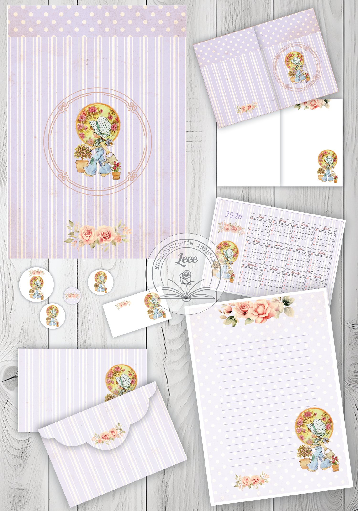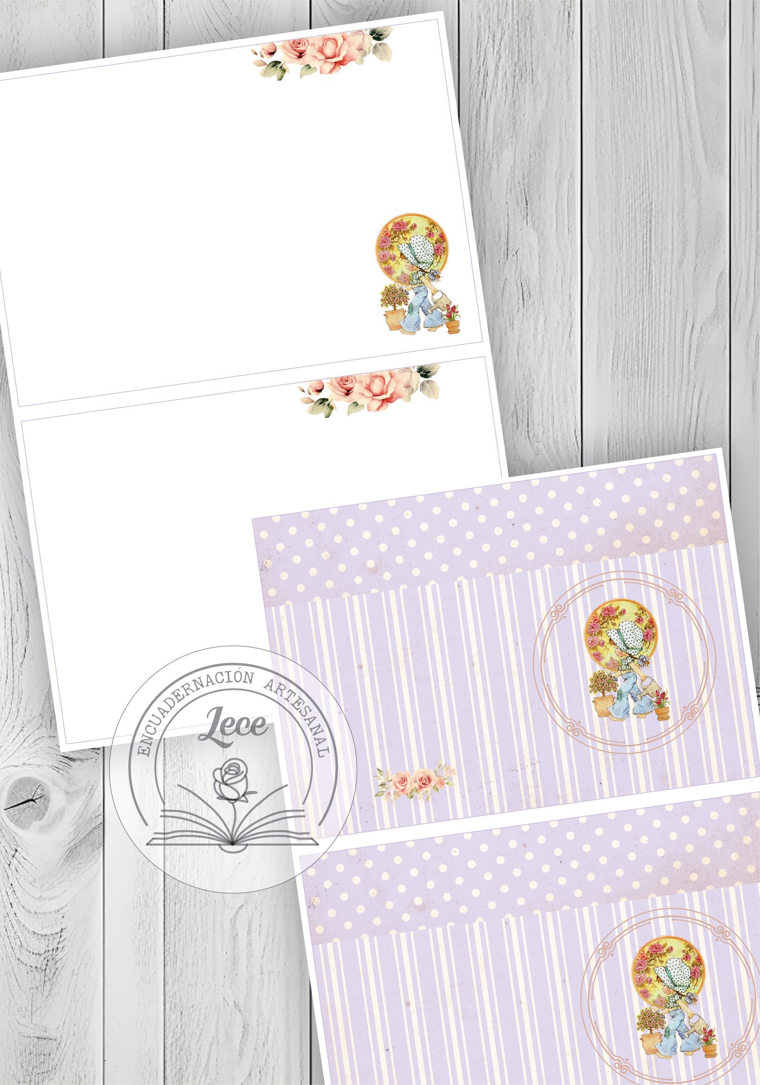 Set imprimible de papelería Sarita Primaveral (Tono violeta)