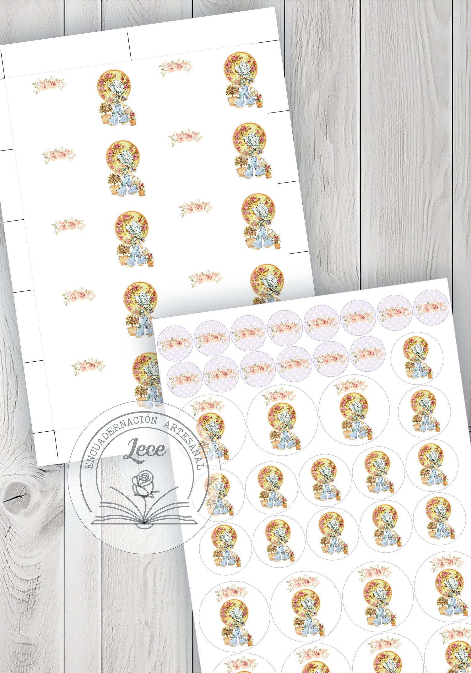 - 1 modelo de círculo de 2,5cm - 1 modelo de círculo de 3,7cm - 1 modelo de círculo de 5cm (la hoja A4 contiene 14, 12 y 11 unidades respectivamente)