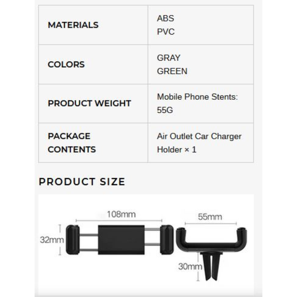Two specifications design, easy to fix on the air outlet, do not block the line of sight.