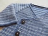 ちょっぴりひねりを利かせてボーダーを裏メリヤス編みにしたら、ぐっと優しい表情になりました。縁のIコードが全体の印象を引き締めます。