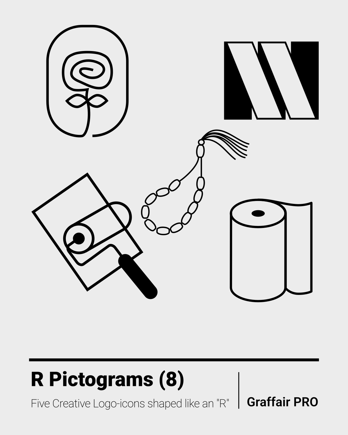R Pictograms (8): The 8th set of 5 pictograms, each beginning with an "R".