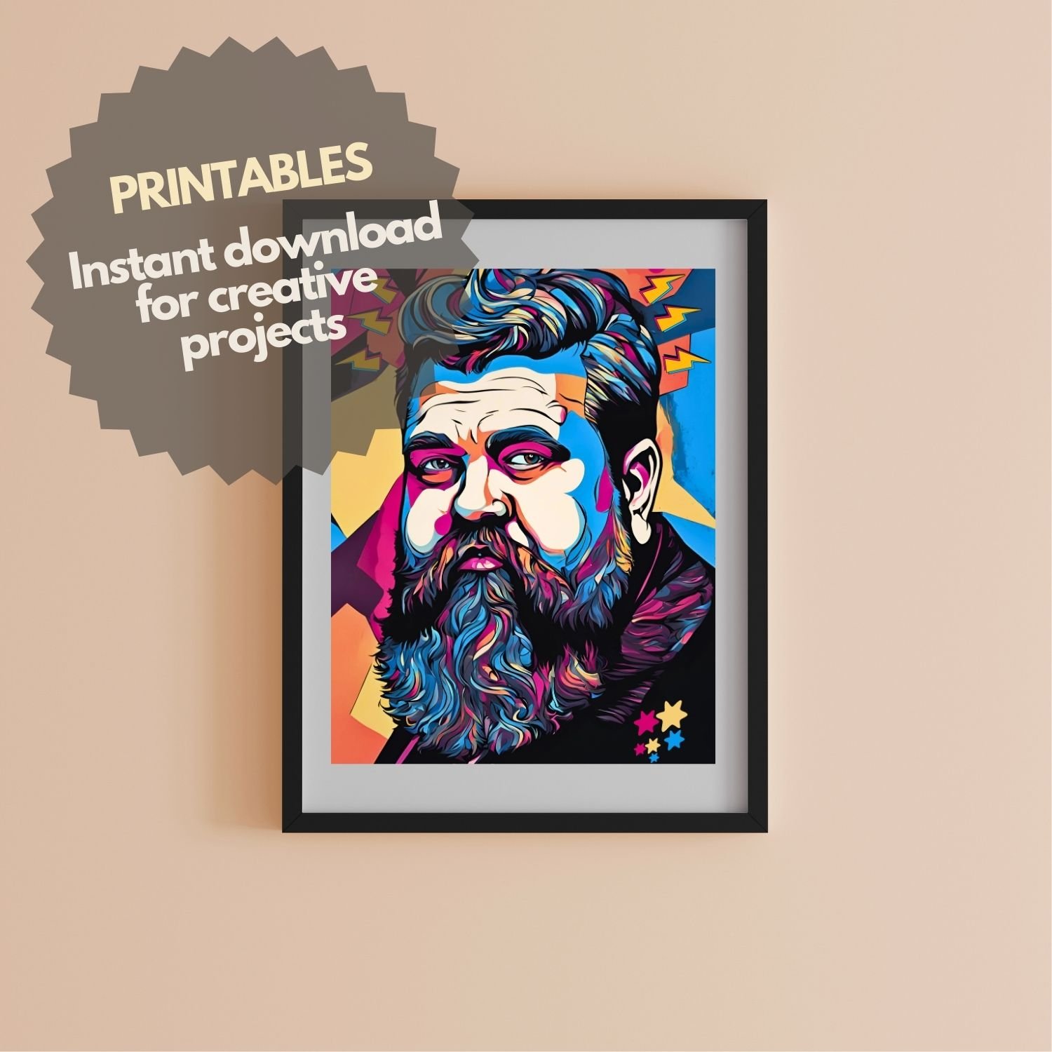 Pop bear man Art Canvas male Face Painting Vibrant Pop Art masculine Portrait - Bold, Colorful Wall Art