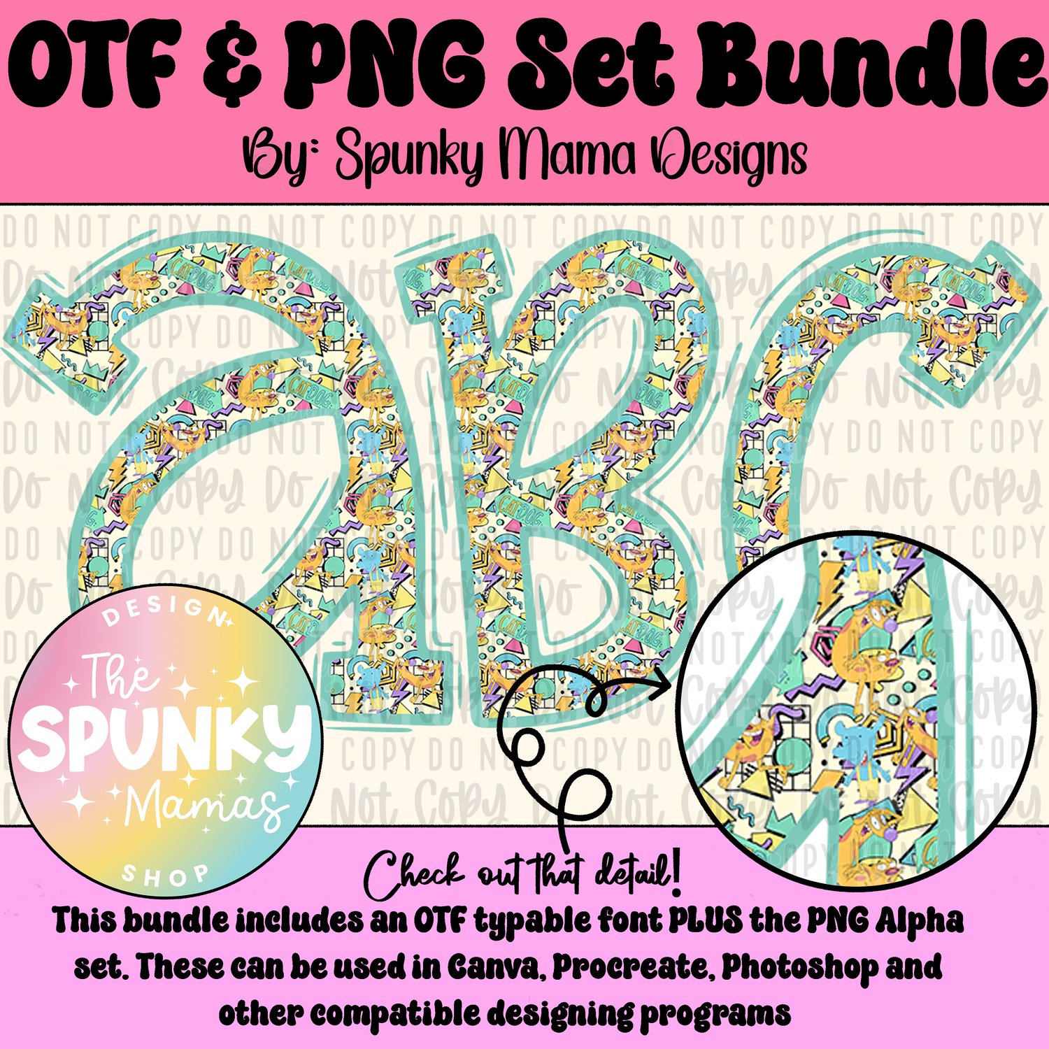 Retro CatDog OTF Font & Digital PNG Alpha Set