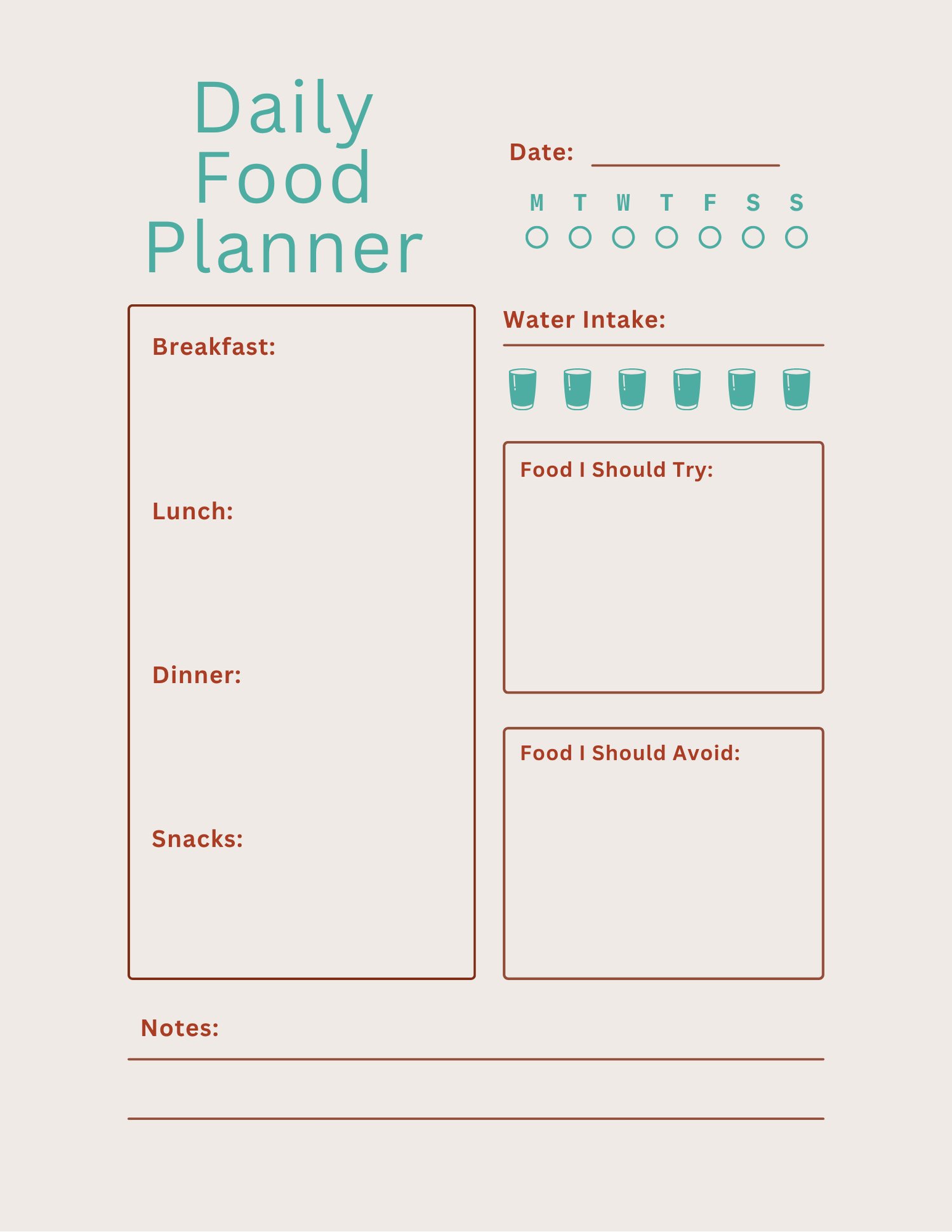 Stay on track with your meals and make healthy eating easier with this simple Daily Food Planner!