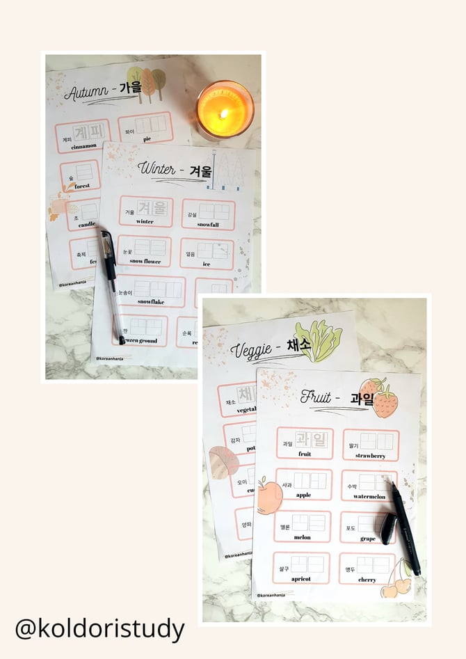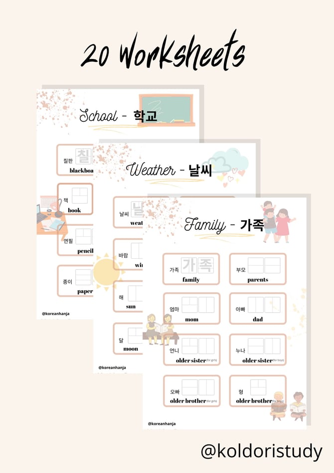 Let's Write Korean: Nouns is the second workbook of the ‘Let’s Write’ series. After mastering Hangeul, the Korean alphabet (check out the first book), this is the perfect next step to build your vocabulary and practice your handwriting.