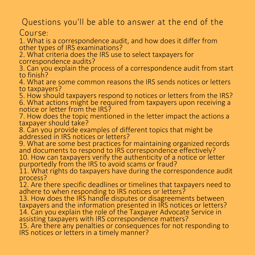 By the end of this training, your team will be equipped to confidently navigate IRS communications, resolve issues effectively, and provide exceptional client support, enhancing your office's reputation and efficiency.