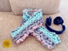 Are you looking to exude elegance and feel comfortable at the same time? We have the perfect solution for you! Introducing our handmade chunky crochet scarf, a masterpiece that effortlessly combines style and warmth. Crafted with care and passion, this scarf showcases soft pastel tones, creating a relaxing and elegant palette perfect for any occasion, whether for special events or just to add style to your daily look.