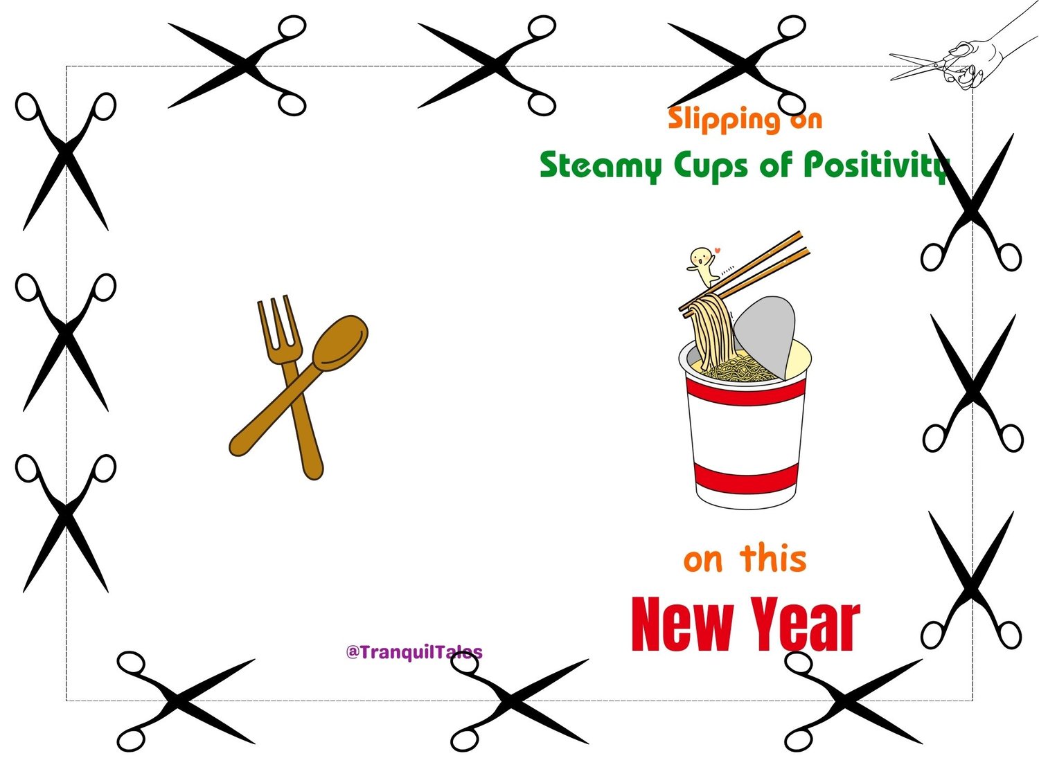 Slipping on Steamy Cups of Positivity on this New Year Card - 5" x 7" inches - New Year card - PDF File