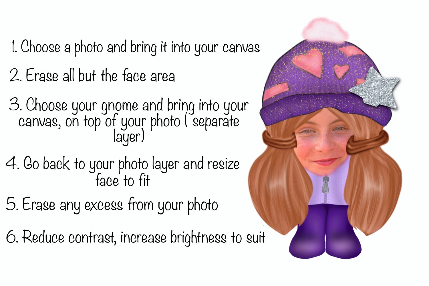 Super fun project. Add a photo underneath the gnome file and resize to suit, then just delete the excess photo.