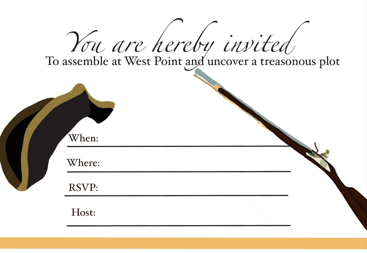 Rest your rifle and put up your feet at West Point fort as you discover who is colluding with British Spies! This game, based off of real historic events, comes in sets of 6, 10, and 16 players. In it, you will play the part of a character as you read a script to find clues hidden in what the characters say and what they show you. Game sets include invitations, character scripts, physical clues, and a host's manual. Game play is set up in three rounds of script reading and improvisation followed by a final vote. Once all of the votes are cast, the culprit(s) will reveal who they are. (This game has the same villain for the 6, 10, and 16 player variations). Some characters include General George Washington, Marquis de Lafayette, General Benedict Arnold, and Lieutenant Colonel Alexander Hamilton to name a few.