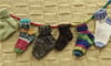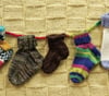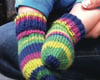 We primarily use fingering weight yarn for these tiny toe toppers and we like to use leftovers of specialty yarns, such as Hand Maiden Casbah, Ancient Arts Hat Trick but you can knit them with larger yarns too. You just get a slightly bigger sock!