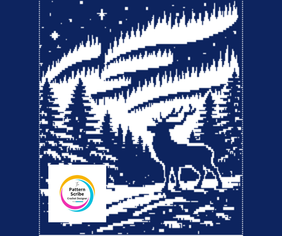 Step into a moonlit northern forest with Antlers of The North, a striking mosaic overlay crochet blanket inspired by majestic stags and the quiet beauty of winter landscapes. This design captures the strength and elegance of the stag framed beneath sweeping antlers, with optional colour complexity for the Northern Lights that allows you to tailor the project to your skill level and creative mood.