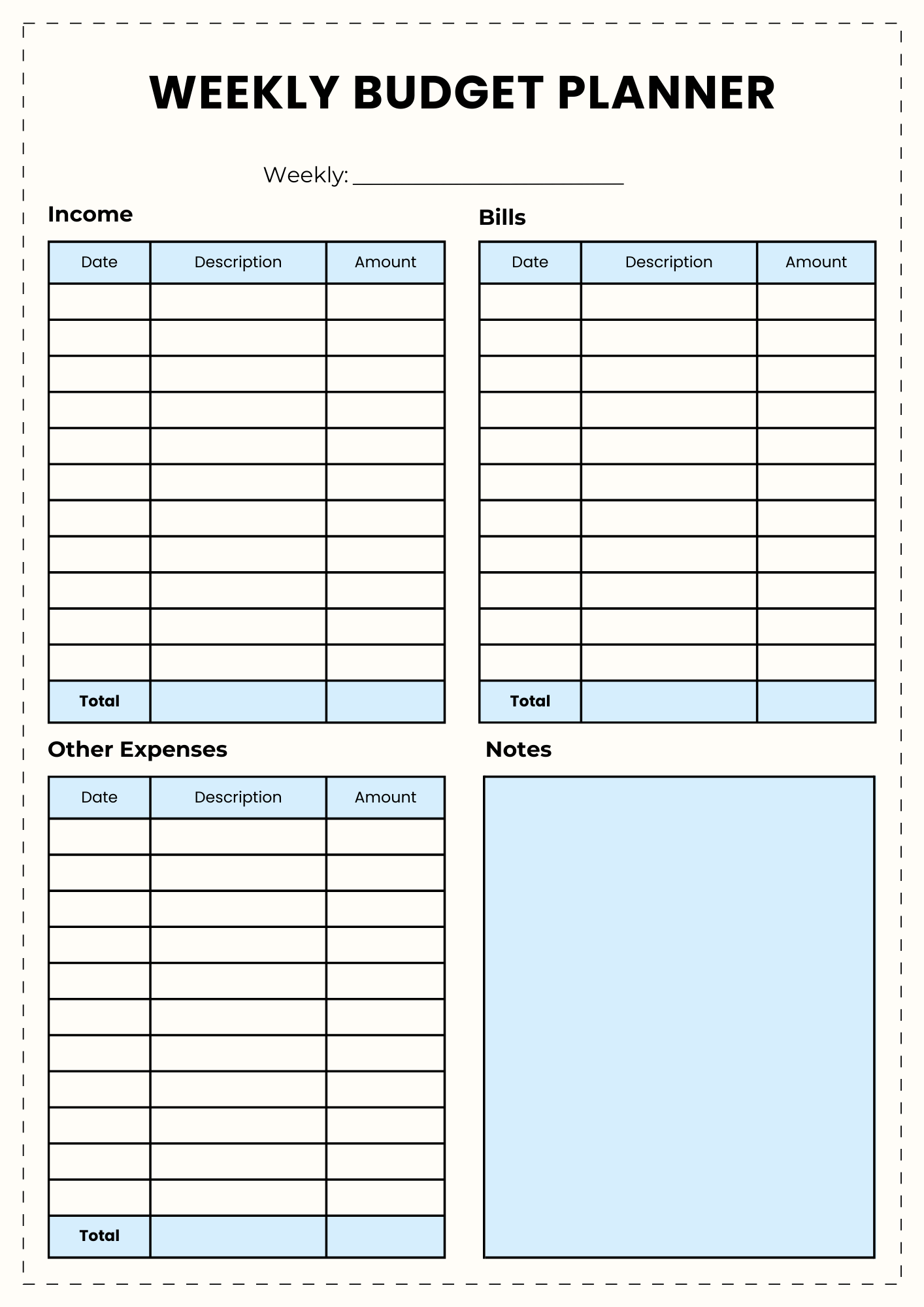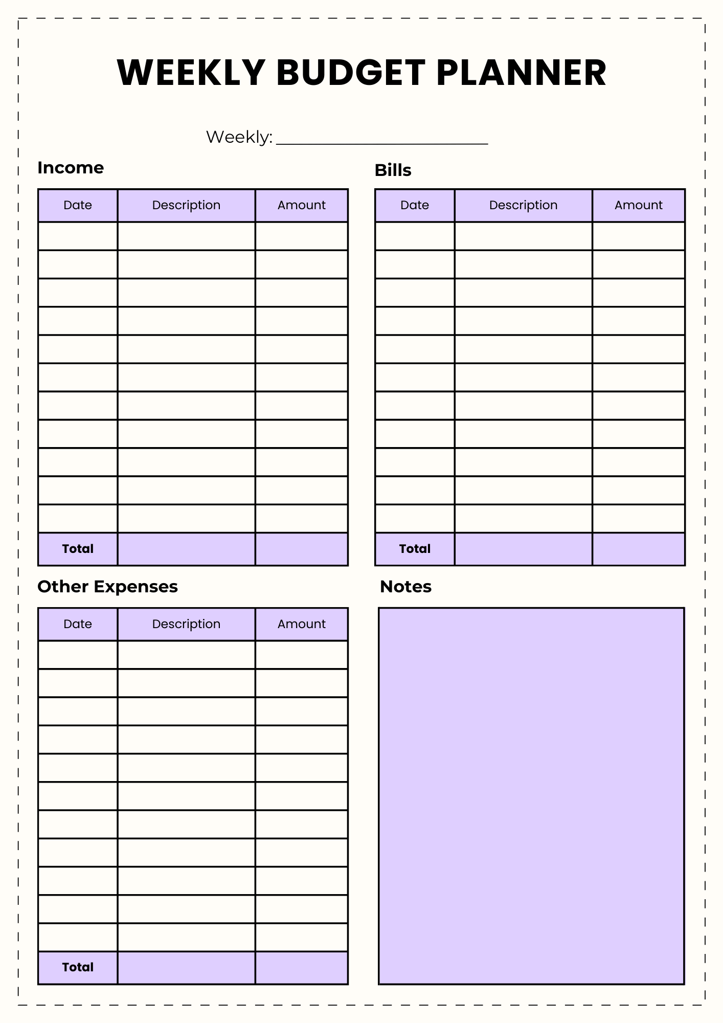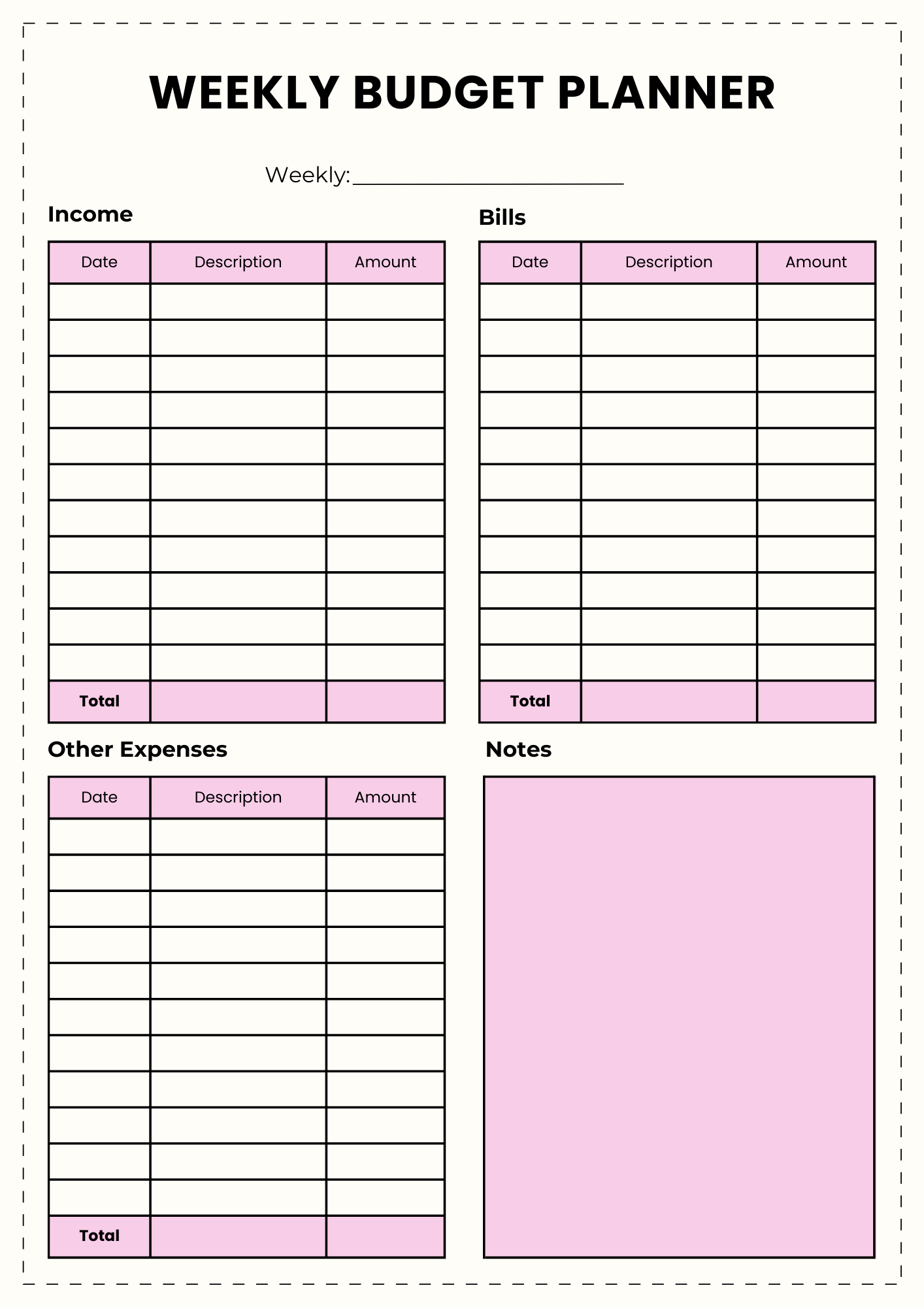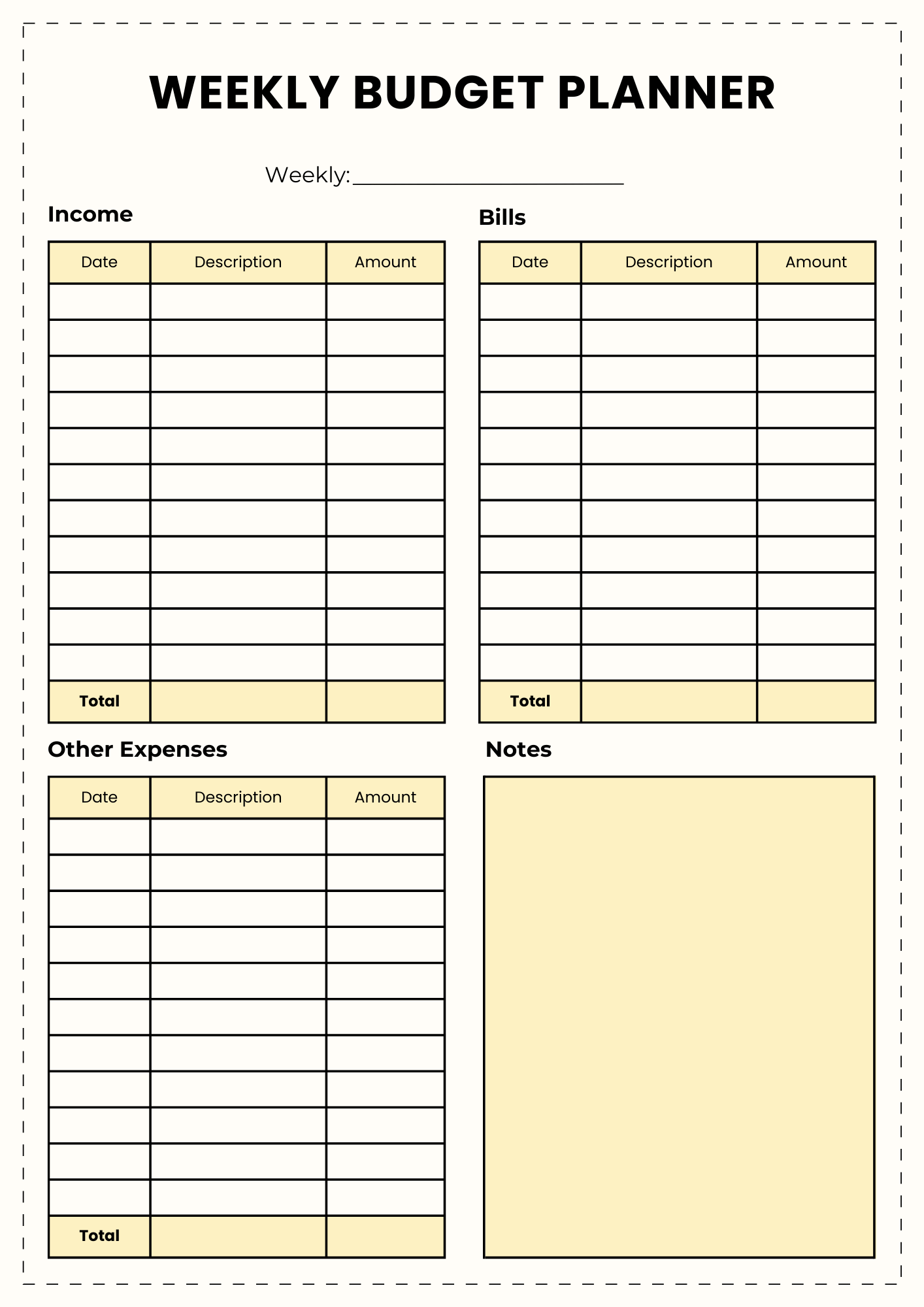 - Weekly Focus: Dedicated space for monthly income and expense tracking, helping you stay organized and make informed financial decisions.