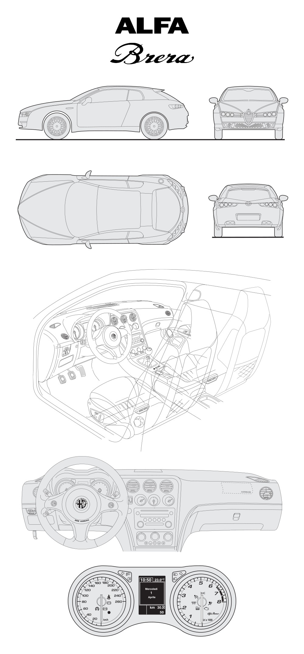Alfa Romeo Brera Car Blueprint PDF SVG Vector File.