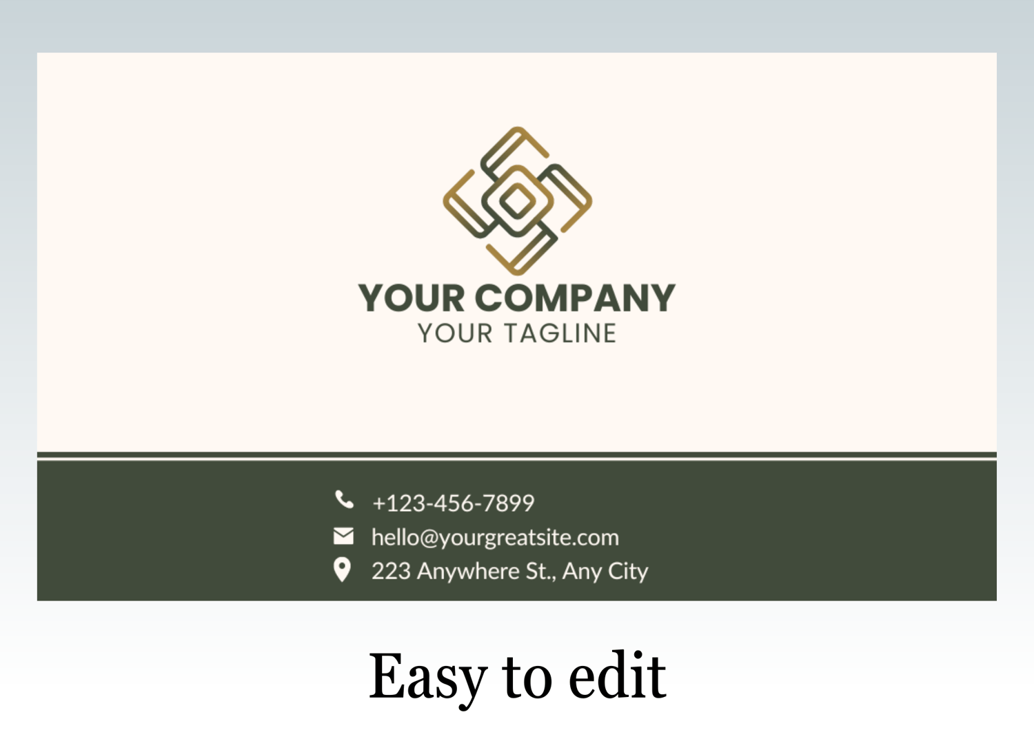 These business card templates are perfect for any modern and professional business. The minimalistic design in a customizable brown theme that can easily be customized to suit your brand colors makes it ideal for any business. The free card designer template makes it easy to customize and personalize your business cards.