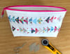 Who doesn’t love a handy pouch - and a big one at that!? This pretty project features foundation paper-pieced Flying Geese panels on the outside with handy inside pockets made to your choice of size, perfect for holding all your quilting tools, a current project to take to class, or your EPP papers collection or maybe you need a jewellery and make-up weekend bag? Or maybe a gift for a friend? This project is so versatile!