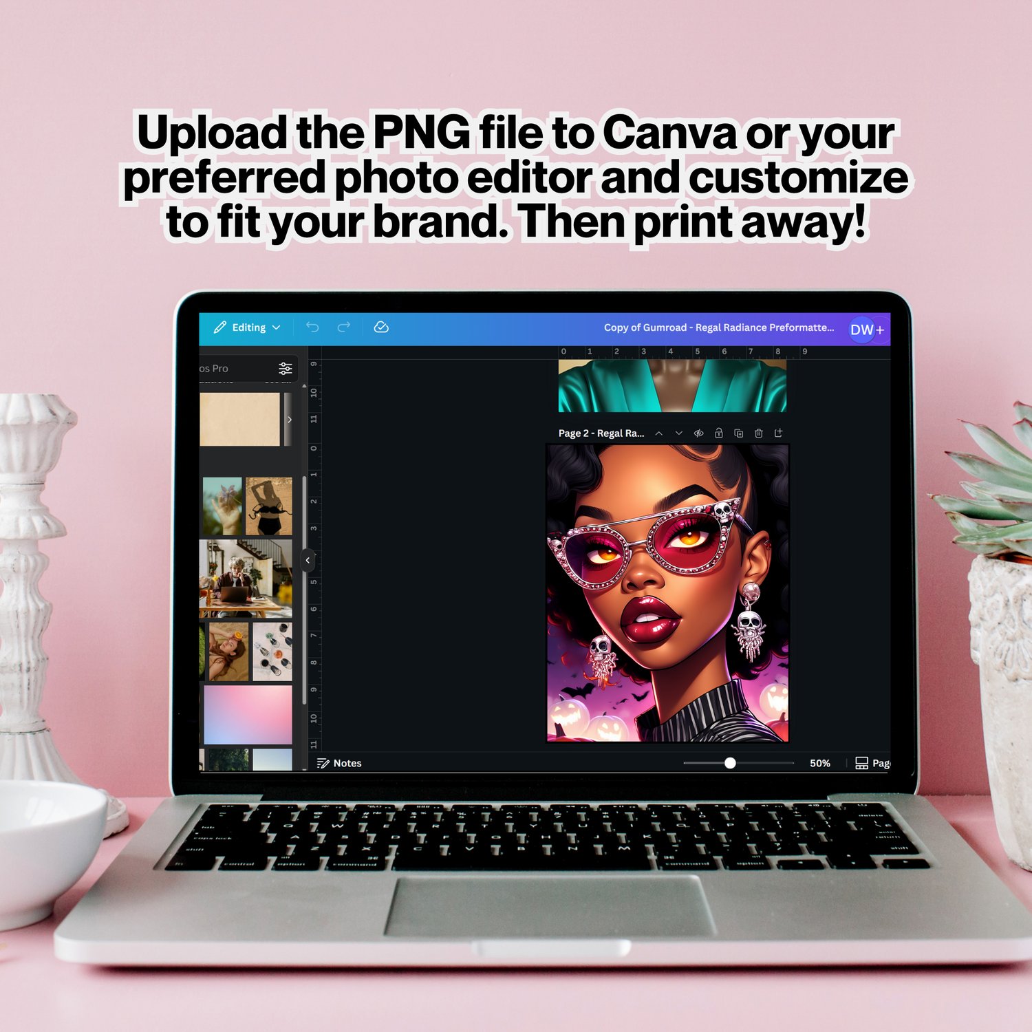 Each cover boasts a high-resolution (300 DPI) PNG file, ensuring a crisp and professional print every time. Perfectly sized at 8.5x11 inches, these covers are ready to print and use! Each cover design flaunts a glam, unapologetic queen adorned with skull jewelry!