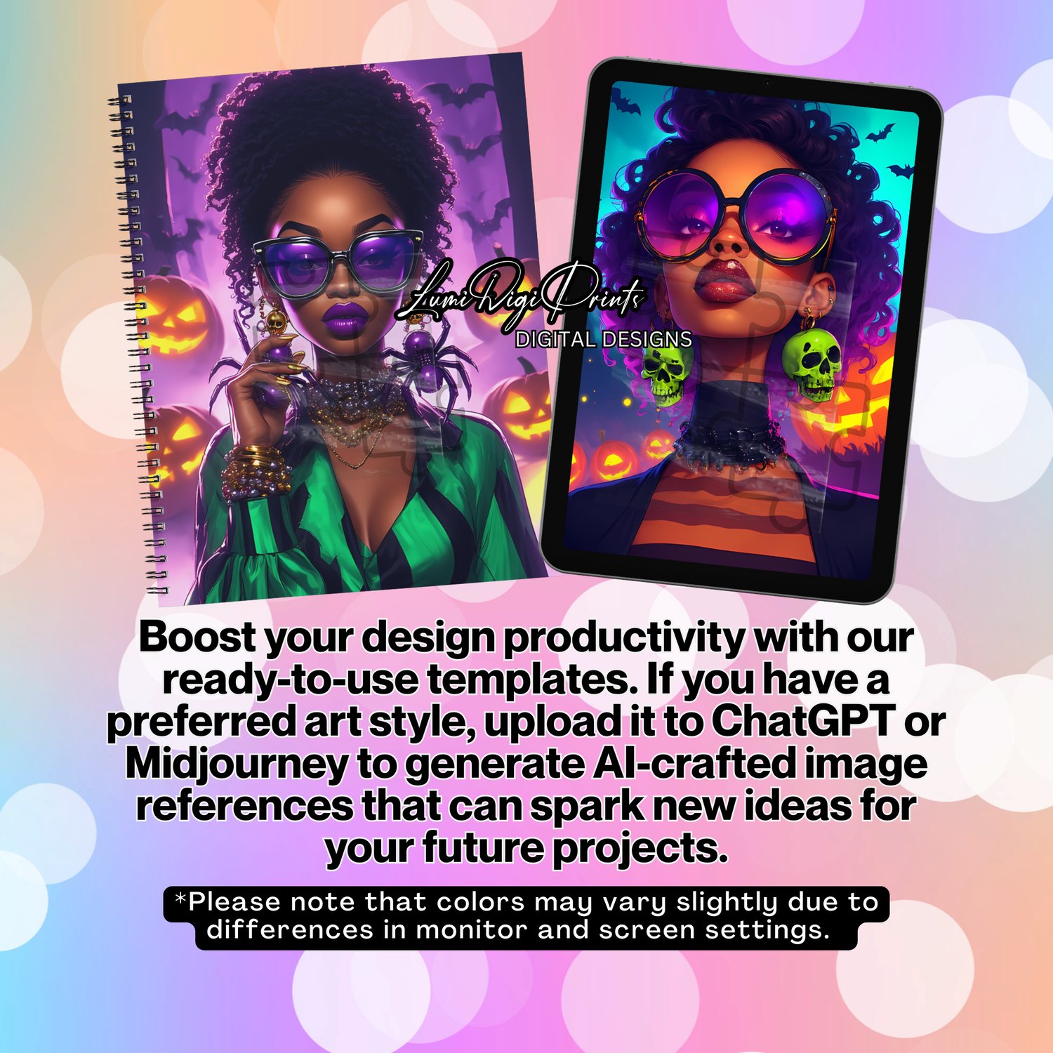 Unleash your inner queen with this stunning Hallow Queen Digital Journal Cover Set! This collection features four unique and vibrant designs, perfect for adding a touch of spooky glam to your journals, notebooks, and planners.