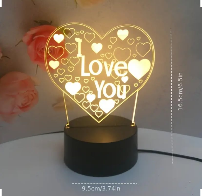 1pc 3D Heart-Shaped Night Light Featuring "I Love You" Design, Perfect for Valentine'S Day Gift, Indoor Use LED Lamp with Non-Battery Power Mode, Contains Electronic Components - Compatible with ≤36V Power Supply