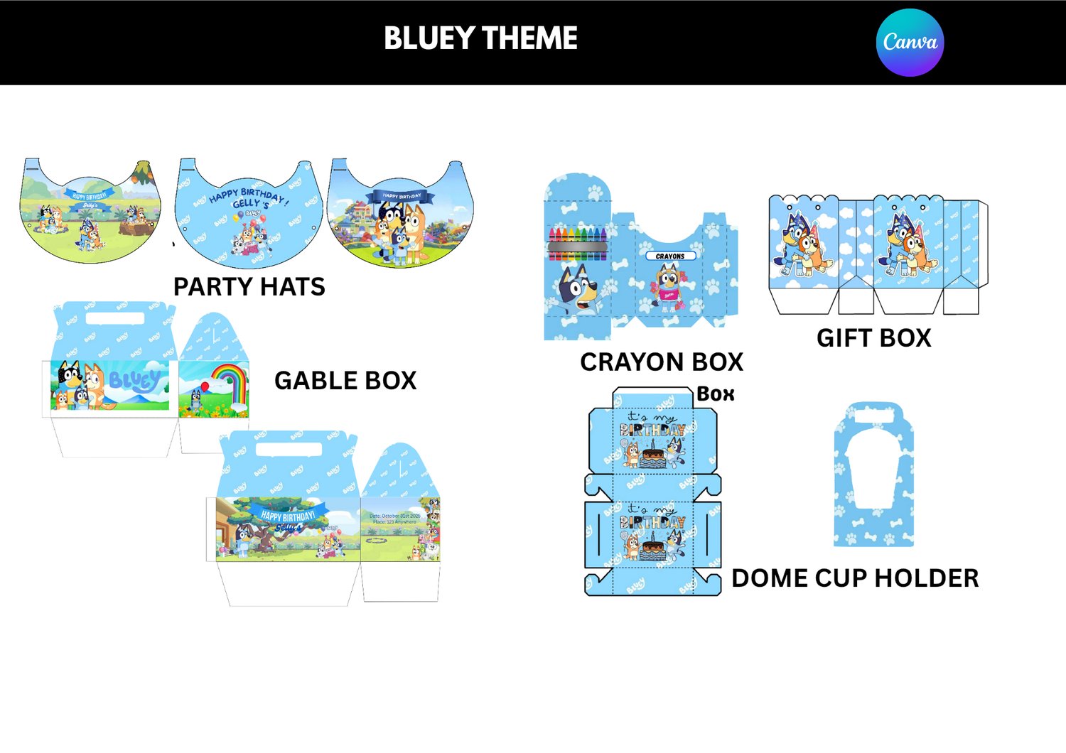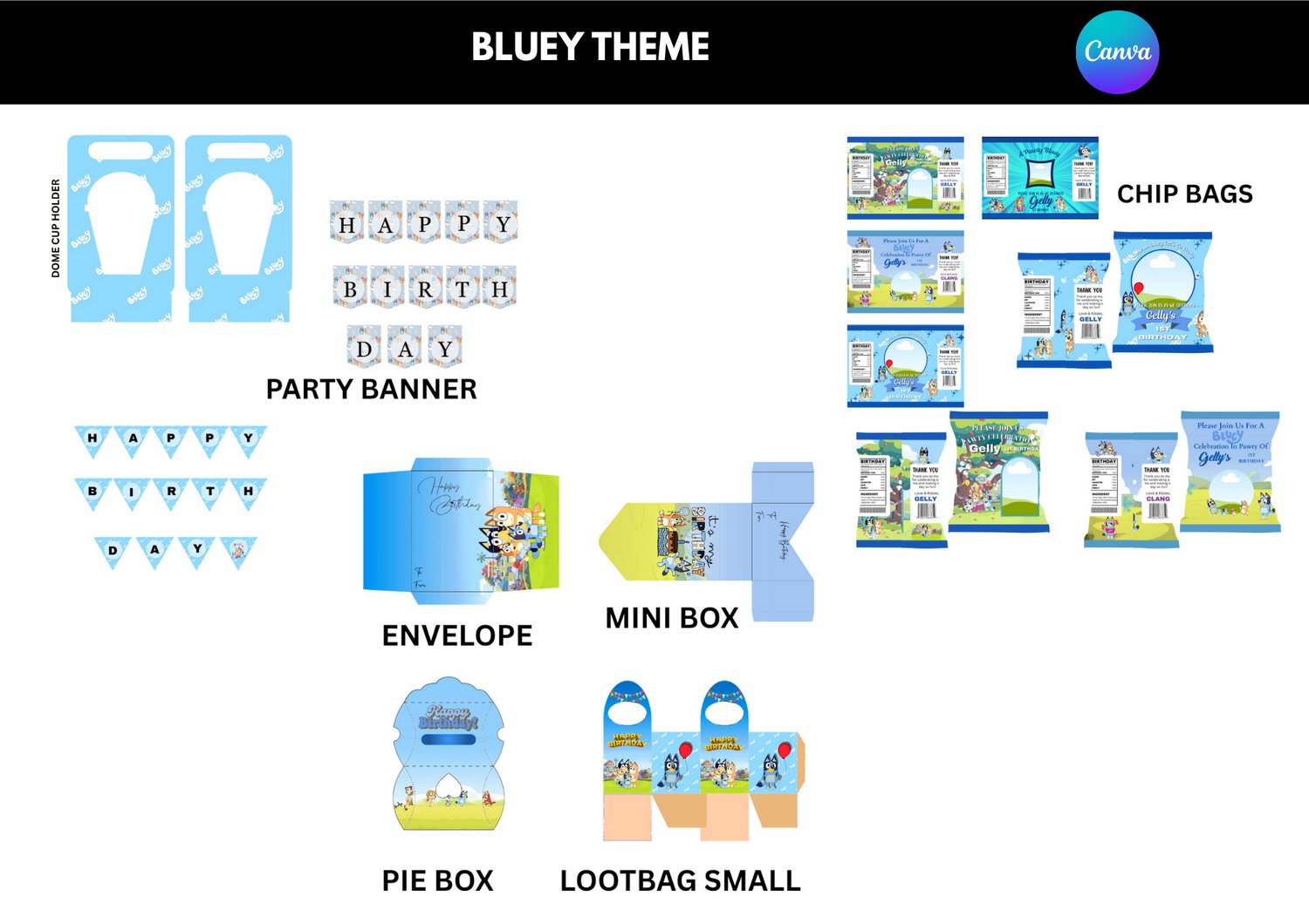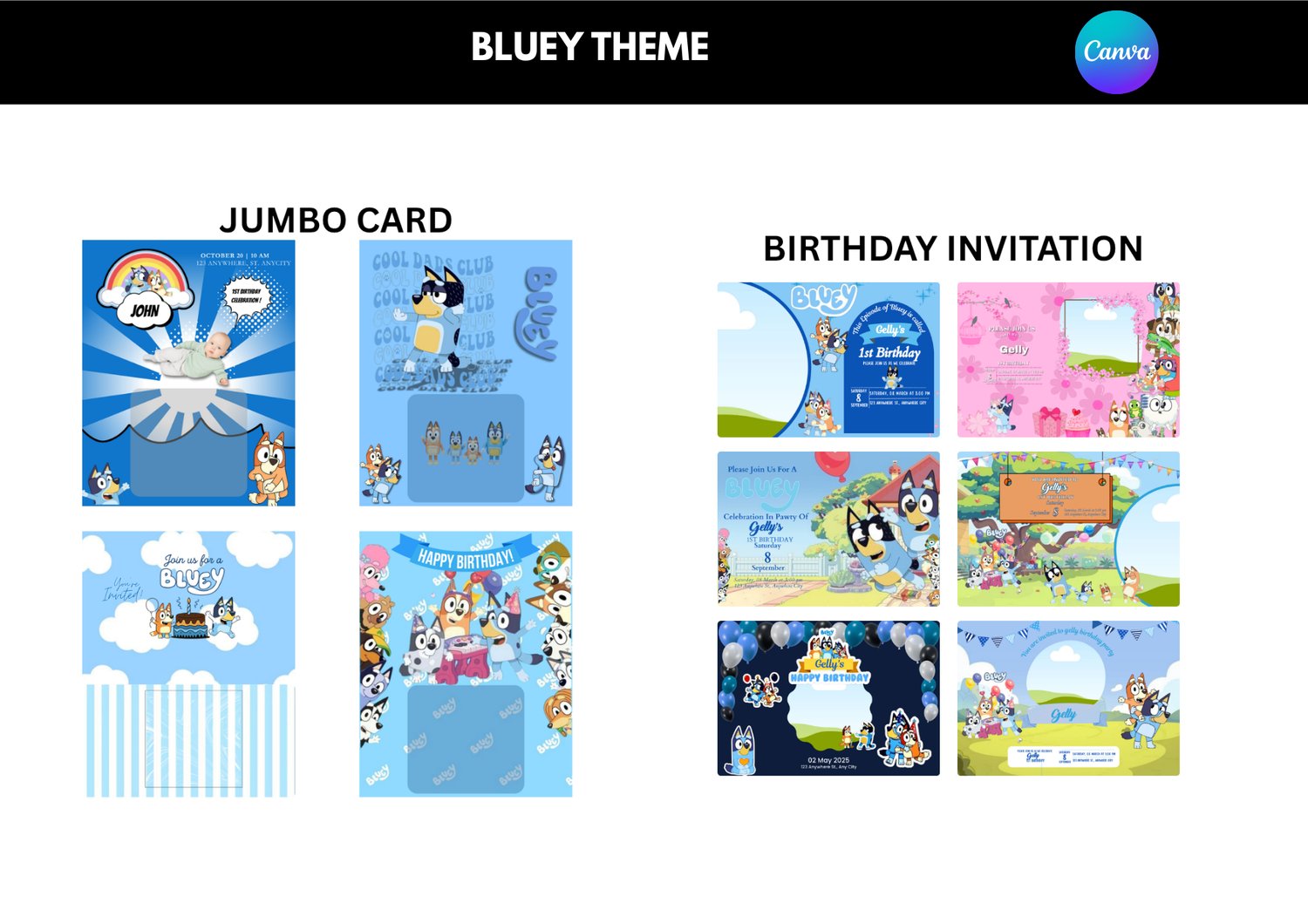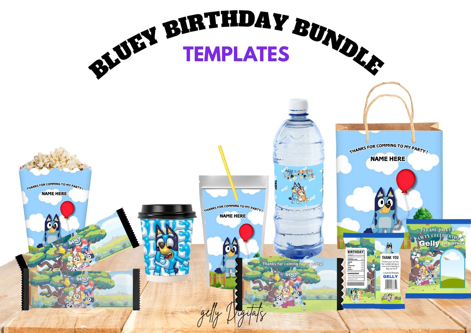 Birthday Bluey Theme Bundle Templates