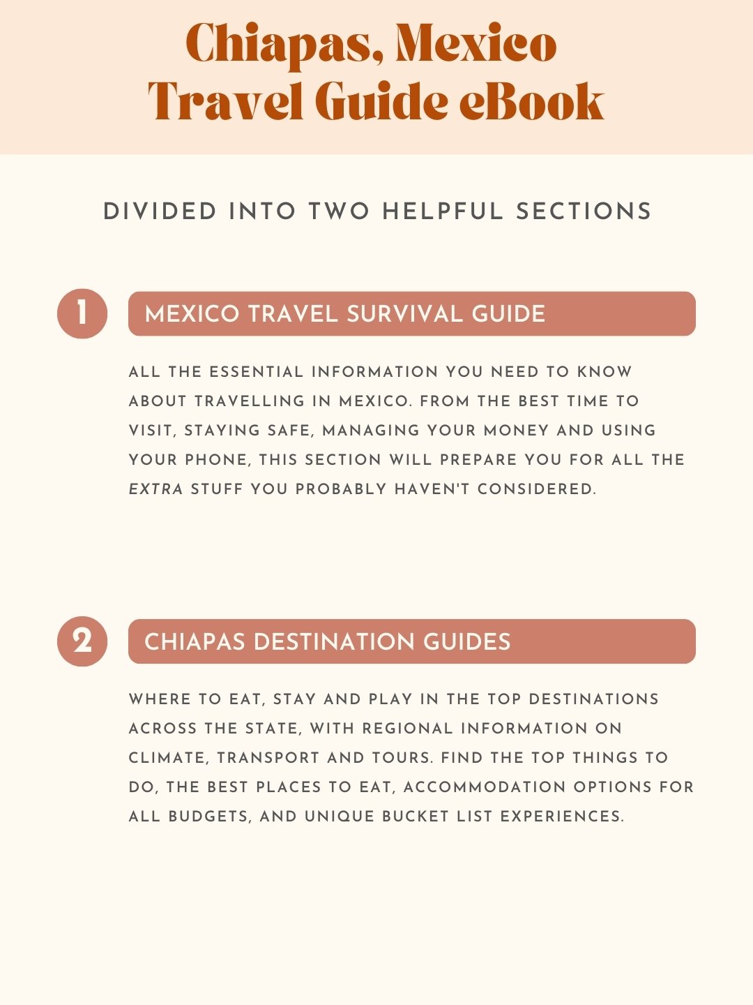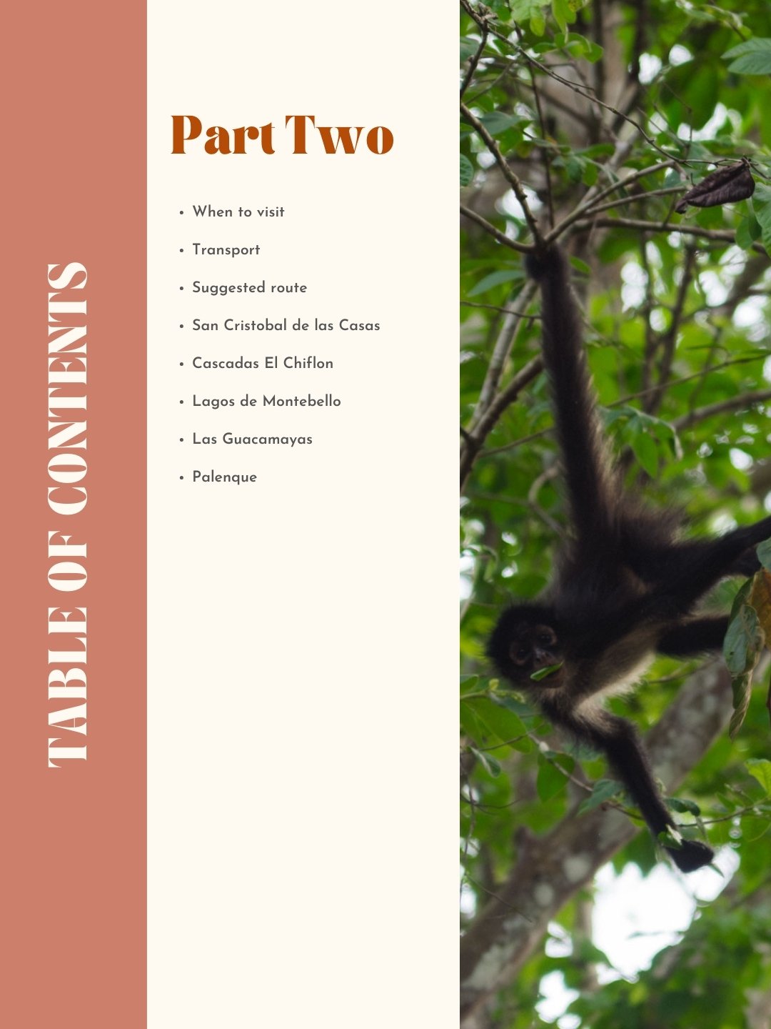 This Chiapas Travel Guide contains two sections with an easy-to-navigate, clickable table of contents: