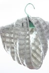 Silver Storm is a very special cowl. Made with the Feel Good Yarn Company’s Silver Spun Sock, in collaboration with their Year of the Designer series, composed of 5% silver and a combination of cotton with a small amount of Spandex and nylon, it is cotton that doesn’t stretch out.