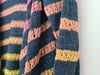 Skills Needed: Work flat; knit and purl; cast on and bind off; knitted and purled increases and decreases – m1L, m1R, m1Lp, m1Rp, k2tog, k3tog, ssk, sssk, p2tog, p2togtbl,yo; lace knitting involves gathered stitches (instructions given) ,knit stripes of different colours.