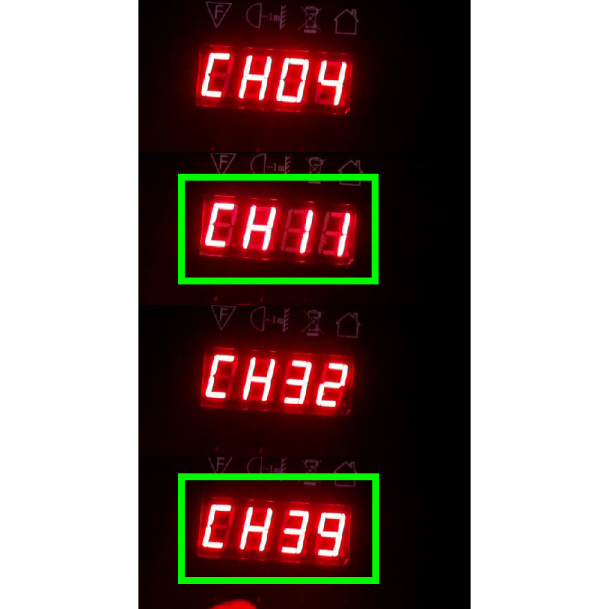 * Verifique en el display del equipo, que muestre los modos dmx: "CH04", "CH11", "CH32" y "CH39" (ver tercer foto).