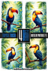 ✦ A vibrant set of four high-resolution watercolor illustrations featuring a tropical toucan perched in lush jungle scenery, with rich exotic colors, soft natural lighting, and subtle textured depth that enhances every feather and leaf—perfect tropical wall art for living rooms, nursery decor, kids’ spaces, boho interiors, and nature-inspired environments, ideal as a digital download or large printable artwork, bringing a fresh, wild, and elegant jungle vibe to any space or creative project.