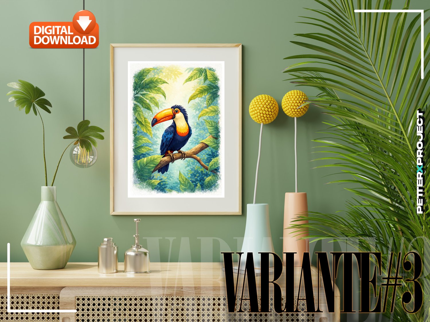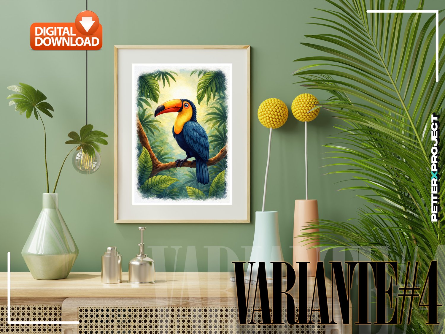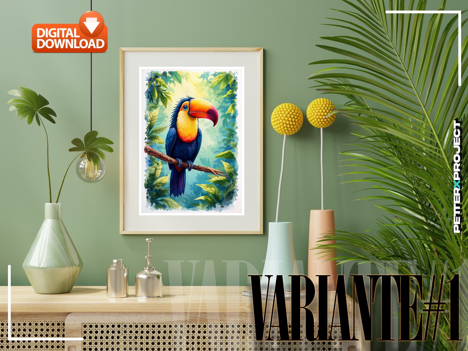 ✦ Colección vibrante de cuatro ilustraciones en acuarela de alta resolución de un tucán tropical posado en una exuberante selva, con colores intensos, iluminación natural suave y texturas sutiles que realzan cada pluma y hoja, creando arte exótico ideal para decoración de salas, espacios infantiles (nursery), habitaciones, interiores estilo boho y ambientes inspirados en la naturaleza, perfecta como descarga digital o arte imprimible en gran formato, aportando un estilo fresco, salvaje y elegante a cualquier espacio o proyecto creativo.