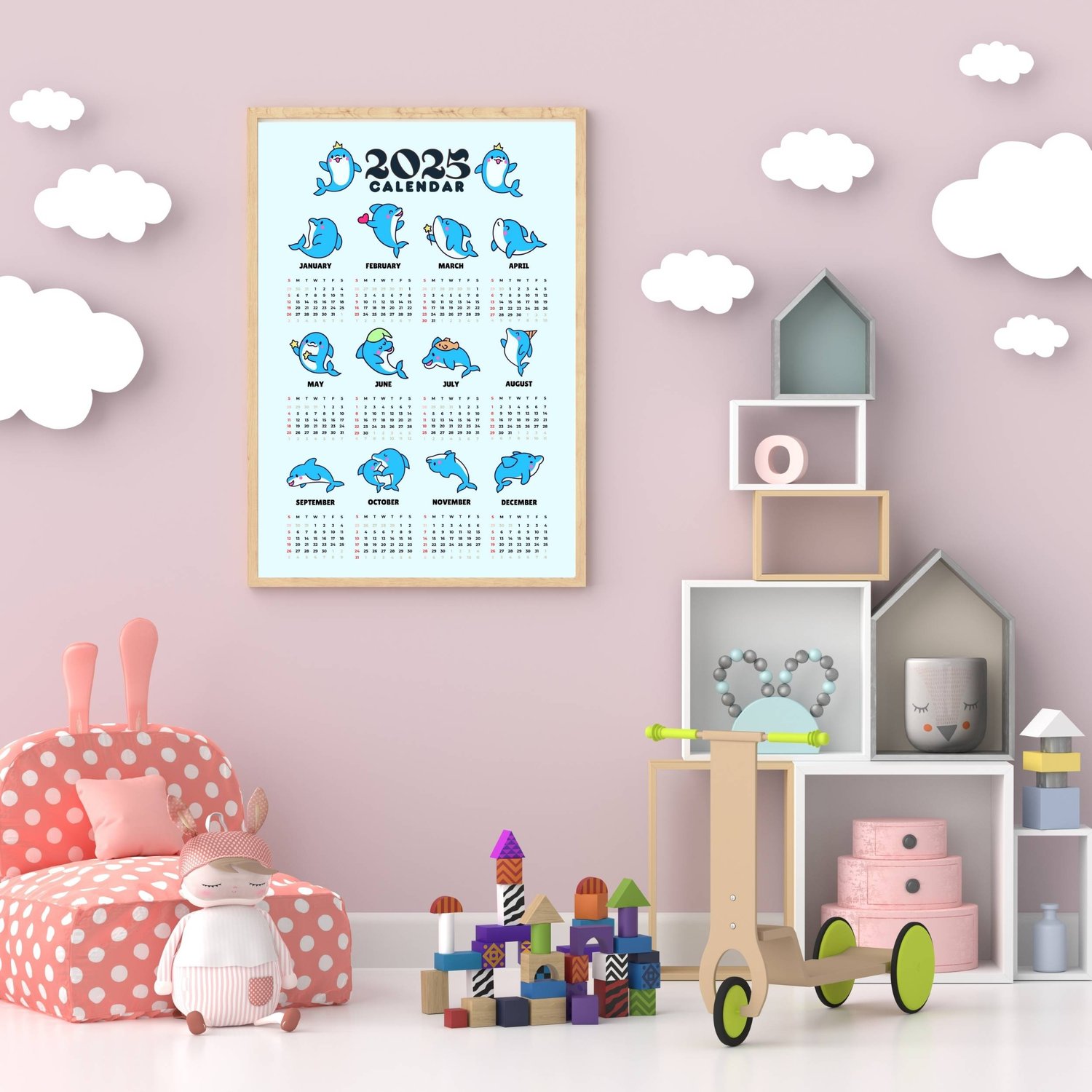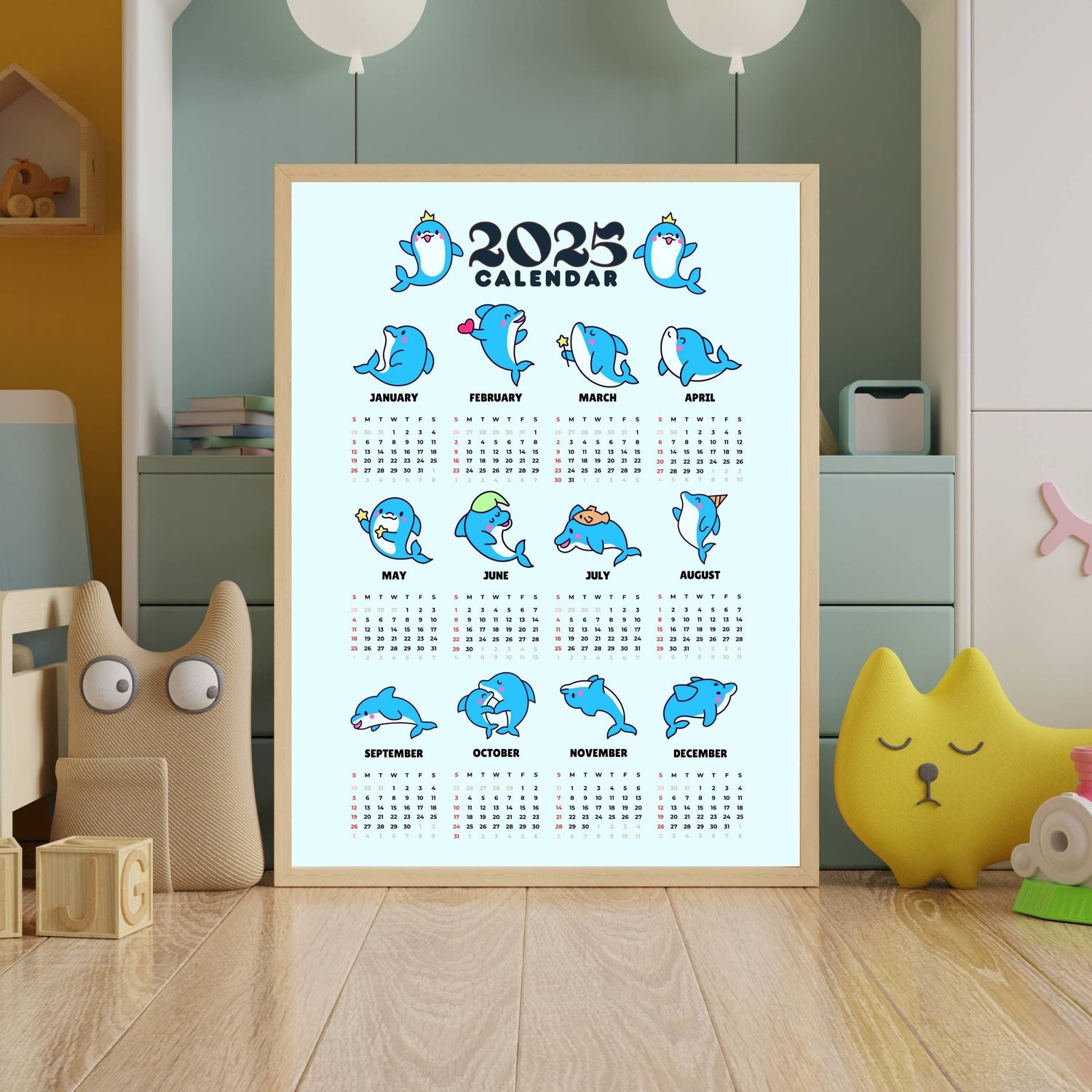 Dolphin Calendar 2025, Digital Calendar, Yearly Calendar 2025, Digital download