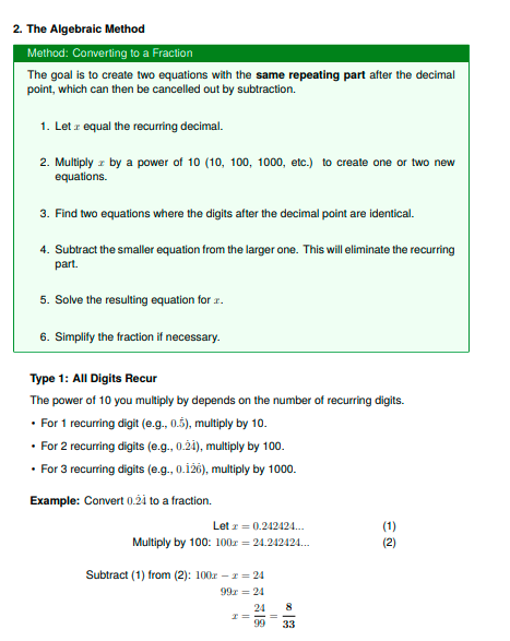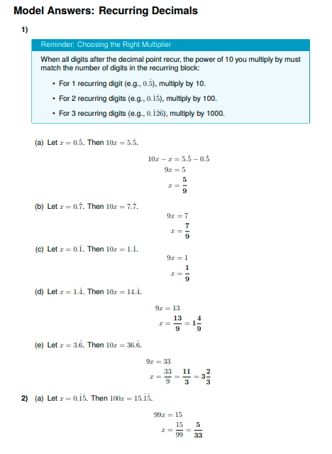 IGCSE Higher Maths: Recurring Decimals (Worksheet & Model Answers)