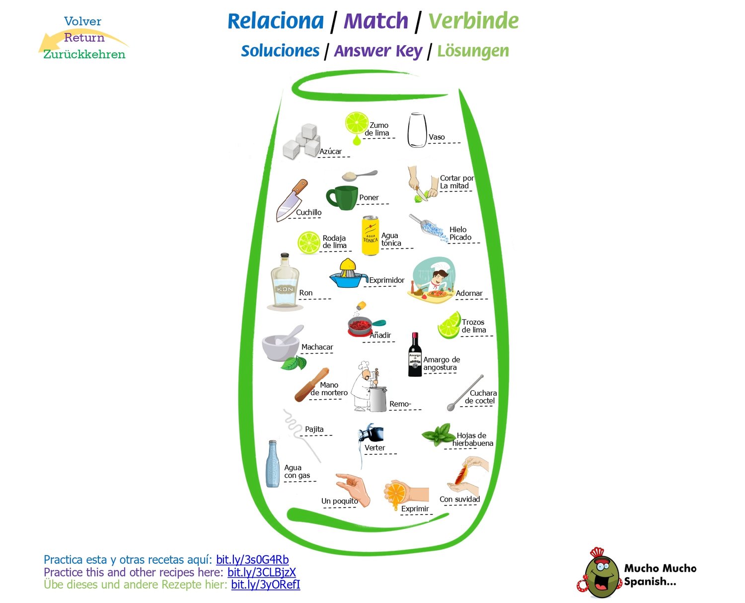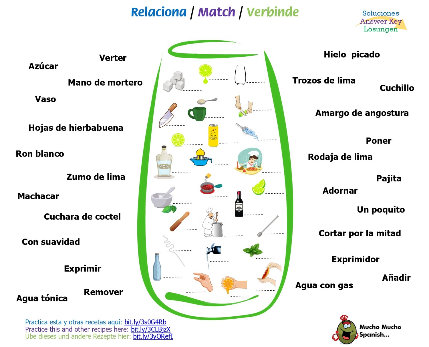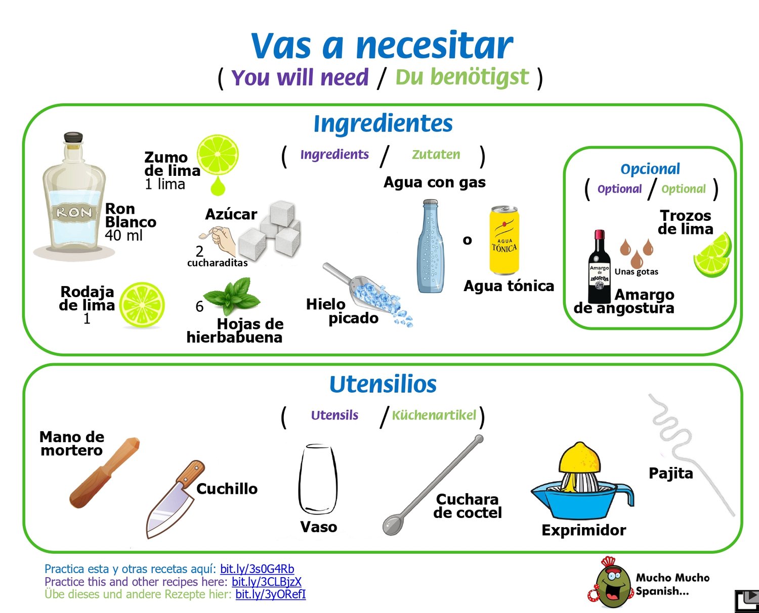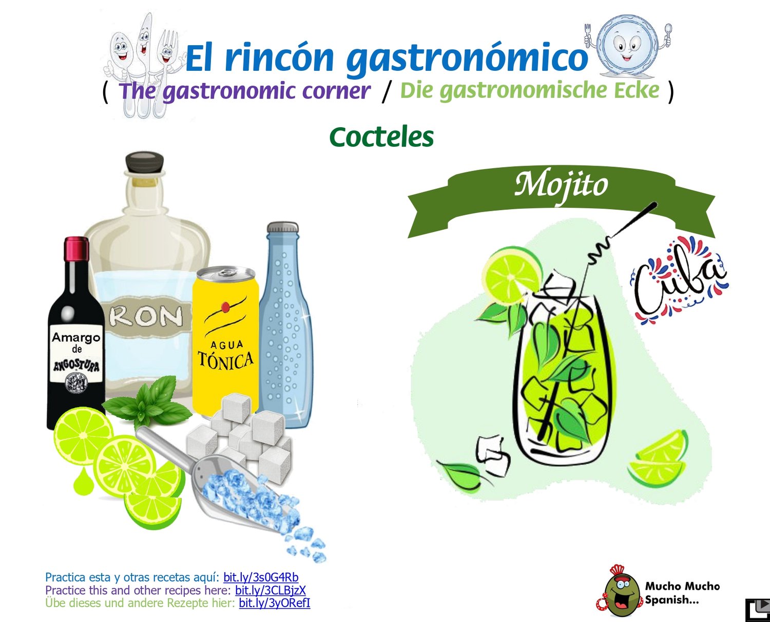 Mojito - recipe / Do you want to learn how to prepare step by step this popular and refreshing Cuban drink? Get this totally free interactive PDF (with audios, answers and links for further practice) and become an expert. Cheers! 🍹