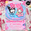 Editable My Melody and Kuromi Pool Party Invitation | Sanrio Birthday Template | Pink and Purple Kawaii Splash Party | Instant Download Canva