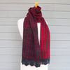 I grew up in New York City, and spent so much time walking down Manhattan streets, stopping at the corner lights and looking up at the skyscrapers as I waited to cross, seeing the columns of windows stretching up, up, up what seemed like miles into the air. I have a vivid memory of riding down 5th Avenue in a taxi with my father when I was a kid, and seeing the sunset reflected in the windows of one soaring building, seeing the gradient of light reflected up towards the sky as the sun set. This scarf if my attempt to recreate that memory I can still see in my mind’s eye.