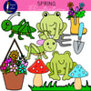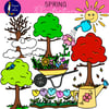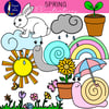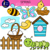 Includes: birds, bees, bird houses, butterflies, caterpillar, clouds, easter eggs, egg basket, fence, flower boot, frogs, garden tools, grass, grasshopper, hanging flower pot, mushrooms, nest, potted plants, rabbit, rain clouds, rainbow, snails, spring gardens, sun, fall tree, winter tree, spring tree, tulip garden, umbrellas, watering can, watering flower, wheelbarrow with flowers, and more!