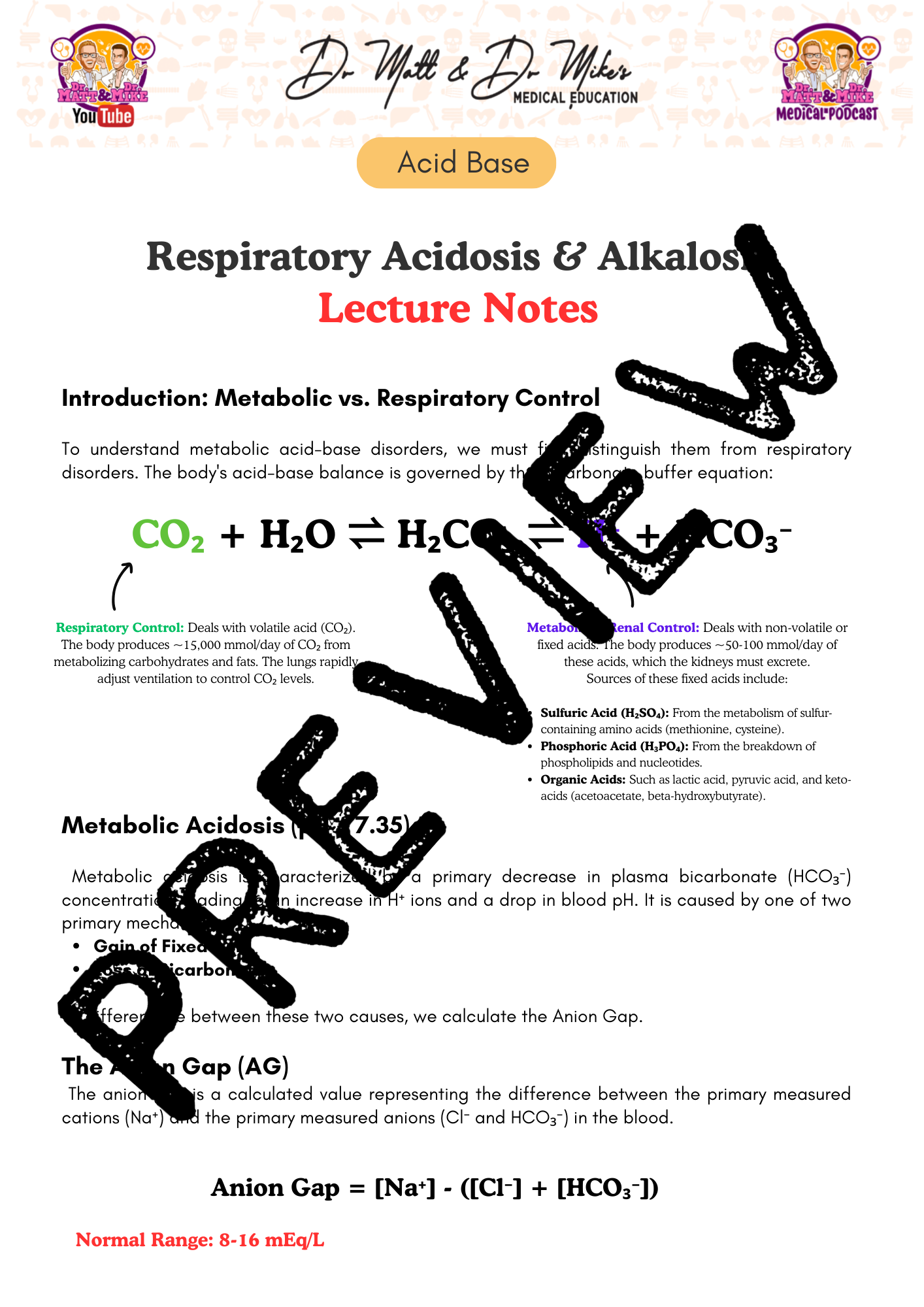 These notes are designed to complement the YouTube video by Dr Matt & Dr Mike titled: Metabolic Acidosis & Alkalosis