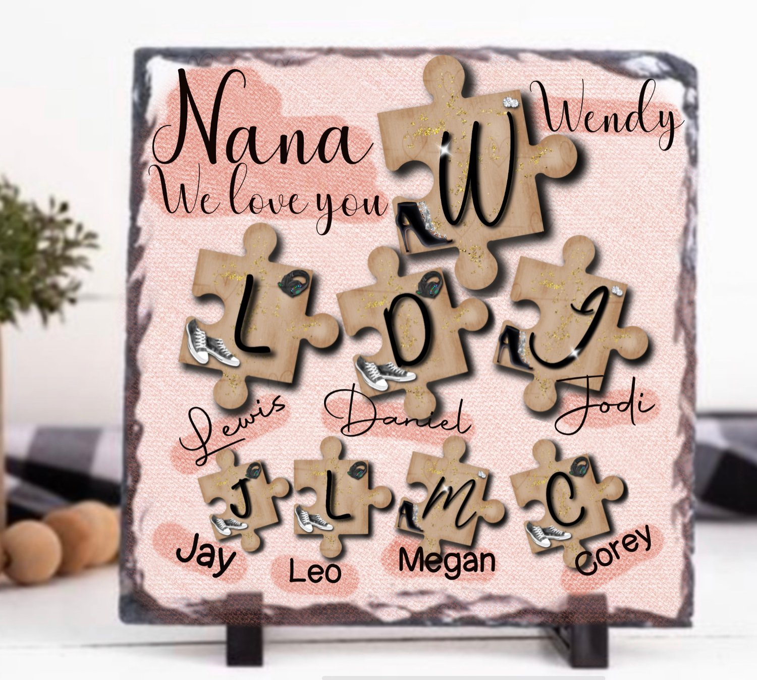 2 for the price of one. 3D jigsaw alphabets. Female and male versions. Female version has a designer shoe with diamond embellishments. Male version has sneakers and headphones. All in 3D