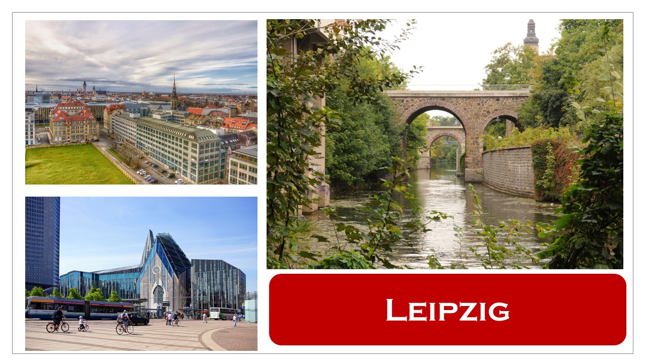Leipzig är en kretsfri stad och den största staden i den tyska delstaten Sachsen 190 kilometer sydväst om Berlin. Leipzig är ett av Sachsens sex Oberzentren. Staden bildar tillsammans med grannstaden Halle an der Saale i Sachsen-Anhalt centrum i Mellersta Tysklands storstadsregion, dit även de närbelägna större städerna Chemnitz, Zwickau, Dessau-Rosslau, Jena och Gera officiellt räknas. Leipzig är en viktig infrastrukturknutpunkt och ett av de viktigaste näringslivscentrumen i mellersta Tyskland och f.d. Östtyskland. Leipzig fick stadsrättigheter och marknadsprivilegier 1165 och blev tidigt ett viktigt handelscentrum. Leipzigs tradition som betydande stad för mässor i Centraleuropa går tillbaka till 1190. Vid sidan av Frankfurt am Main är staden ett historiskt centrum för bokhandeln och boktryckande. Leipzigs universitet grundades 1409 och är ett av Tysklands äldsta universitet, och staden har även Tysklands äldsta högskolor för handel och musik. 13 sidor.