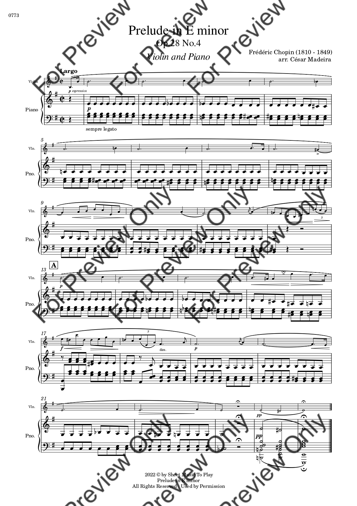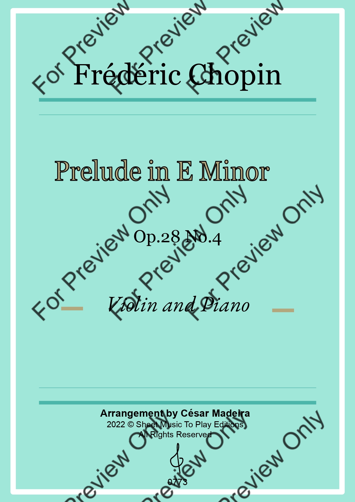 Prelude in E Minor, Op.28 No.4 by Frederic Chopin. Arrangement for Violin and Piano. With Full Score and Individual Parts. Have fun!