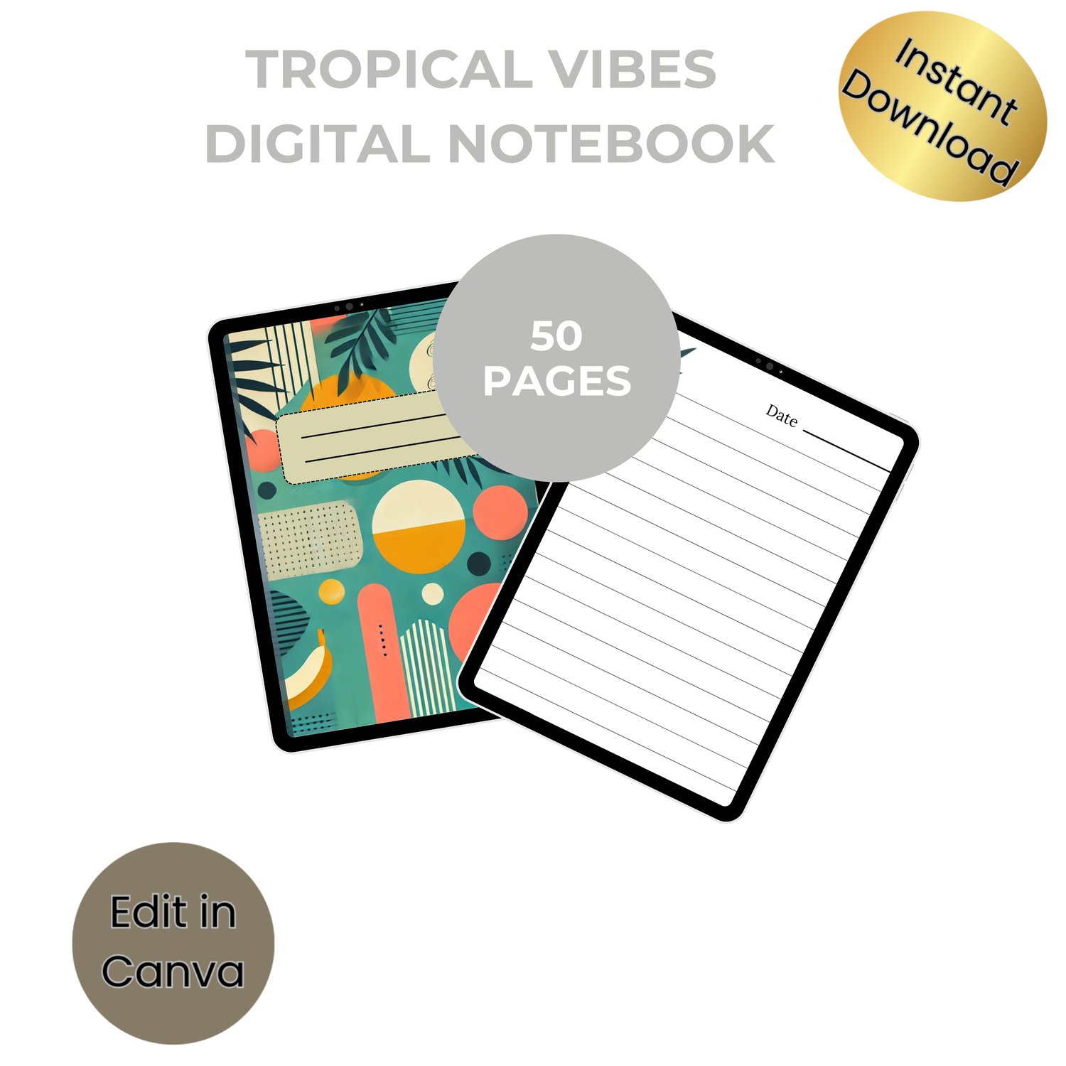 Take your journaling to the next level with this vibrant tropical digital notebook! Includes 50 lined pages and matching covers—perfect for iPad note apps or printing at home.